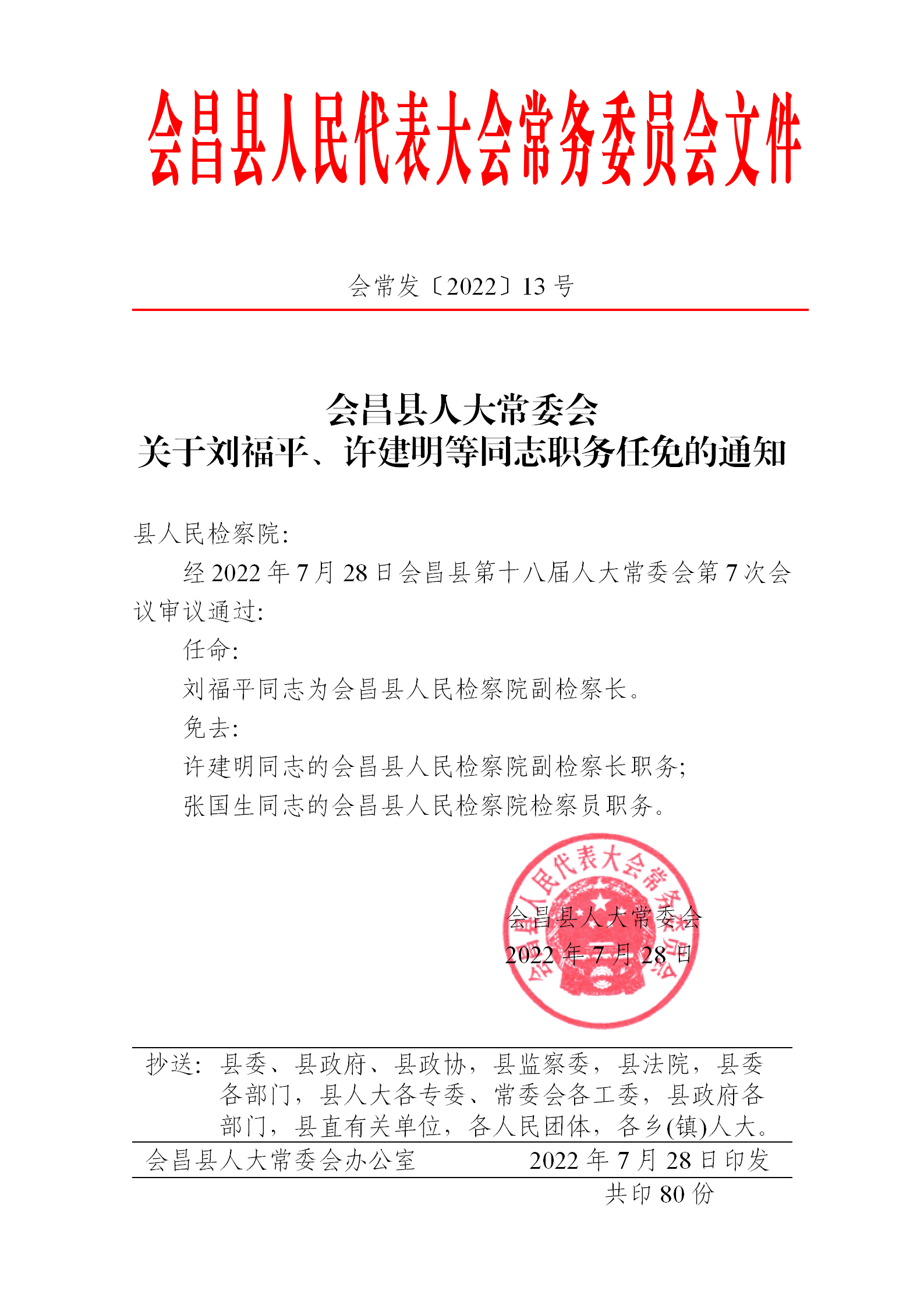 会昌县人民代表大会常务委员会任免名单