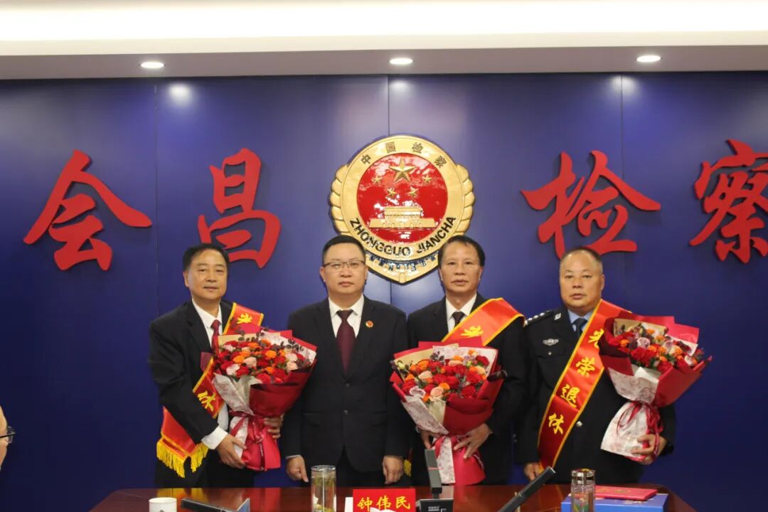 仪式上,三位退休干警同志也发表了退休感言,满怀深情地追忆起自己在会昌检察院奋斗的岁月,分享了工作中积累的宝贵经验,感恩领导的信任、支持以及同事们的同甘苦共奋进。他们表示,尽管退休后离开了工作岗位,仍将不忘初心、发挥余热,继续为党和人民事业作出新贡献、增添新光彩。